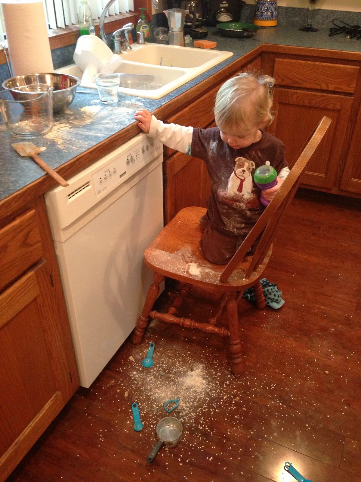 Later that day, Fin colored his cookie and then helped me bake up a big batch of oatmeal raisin cookies. I would have loved to make heart shaped cookies, but I still hadn't found 1/2 of my kitchen supplies, including my cookie cutters. You'd think that moving box labels could be a LITTLE more specific than "misc." But I digress...